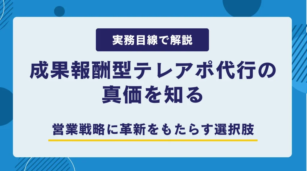 成果報酬型テレアポ代行は、初期費用・月額費用をかけずに商談機会を創出できる、極めて合理的な営業手法です。しかし真価が発揮されるかどうかは、「どのような成果を定義するか」「自社営業とどう連携するか」によって大きく左右されます。単なる外注ではなく、営業戦略の一部として正しく組み込むことで、商談数・商談の質ともに着実な改善が見込めます。